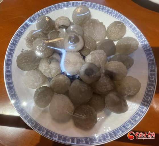 最令我過目難忘的是“中華百家宴”,我曾經(jīng)在其他地方的玉器展上看到過“滿漢全席”,而玉器大多經(jīng)打磨雕琢,太過匠心。臨洮洮河石文化博物館的這桌“中華百家宴”,則基本是石頭原貌,在大自然的雕琢下呈現(xiàn)出獨(dú)特的形態(tài),更顯奇特曼妙。一碟碟的“珍饈佳肴”上覆保鮮膜,有剛剝了殼的軟嫩荔枝,有點(diǎn)綴著紅辣椒綠蔥花的連皮燉肉塊,有表面起酥的炸肉串......看在眼里就覺鮮香可口,令人垂涎欲滴。若不是隔離繩攔著,若不是每個(gè)碗碟上都有保鮮膜蓋著,看到忘乎所以,若是拿起筷子夾一塊大快朵頤,滿嘴牙怕要分崩離析。