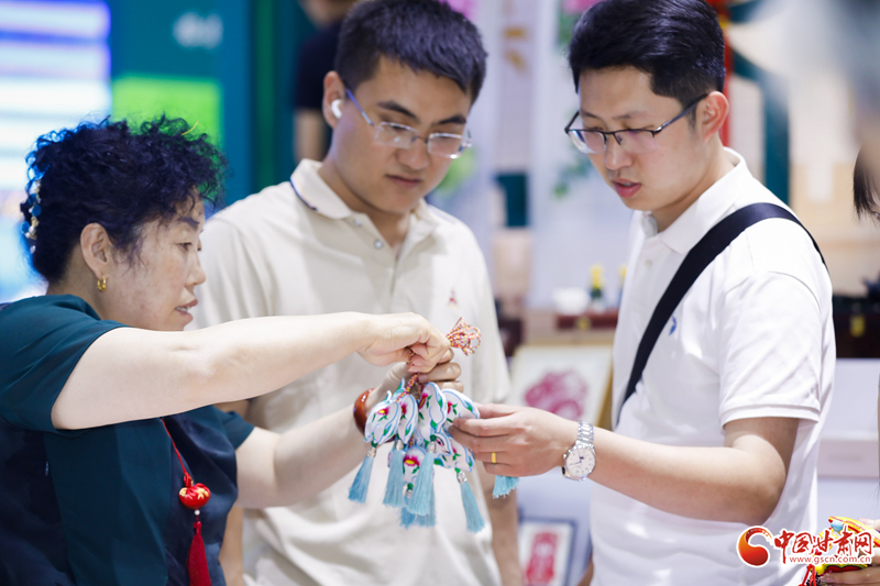 在展館內(nèi),慶陽香包、剪紙等民俗產(chǎn)品同步進(jìn)行展示展銷,深受現(xiàn)場觀眾歡迎,大家紛紛爭相購買。