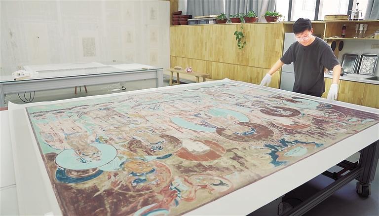 “我來這里7年了,感覺也是一瞬間的事。”畢業(yè)于吉林藝術學院裝裱專業(yè)的徐喆,2017年入職敦煌研究院,“第一次來敦煌,被這里的壁畫所吸引所震撼,能夠在這里當一名裱畫師,也是很幸運的。”