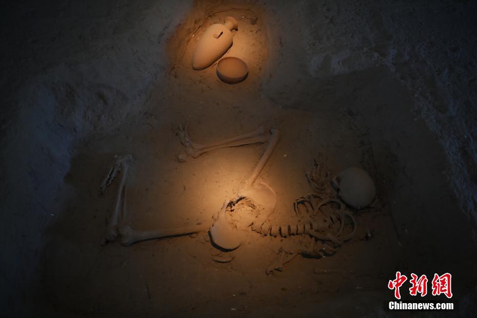 10月22日,2024青年漢學(xué)家研修計(jì)劃甘肅班團(tuán)隊(duì)22個(gè)國(guó)家的青年漢學(xué)家,走進(jìn)甘肅省天水市秦安縣大地灣遺址參觀并進(jìn)行專題研修。大地灣遺址是新石器時(shí)代大型聚落遺址,出土了中國(guó)乃至世界上最早的彩陶文化、最早的文字符號(hào)、種植生產(chǎn)了中國(guó)第一批糧食品種黍、出現(xiàn)了最早的宮殿式建筑、發(fā)明了世界最早的水泥地面、創(chuàng)造了最早的繪畫作品——F411地畫。圖為大地灣博物館墓葬701。中新社記者 李亞龍 攝