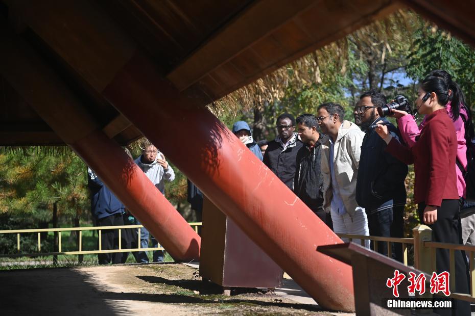 10月22日,2024青年漢學(xué)家研修計(jì)劃甘肅班團(tuán)隊(duì)22個(gè)國(guó)家的青年漢學(xué)家,走進(jìn)甘肅省天水市秦安縣大地灣遺址參觀并進(jìn)行專題研修。大地灣遺址是新石器時(shí)代大型聚落遺址,出土了中國(guó)乃至世界上最早的彩陶文化、最早的文字符號(hào)、種植生產(chǎn)了中國(guó)第一批糧食品種黍、出現(xiàn)了最早的宮殿式建筑、發(fā)明了世界最早的水泥地面、創(chuàng)造了最早的繪畫作品——F411地畫。圖為22國(guó)青年漢學(xué)家參觀大地灣遺址。中新社記者 李亞龍 攝