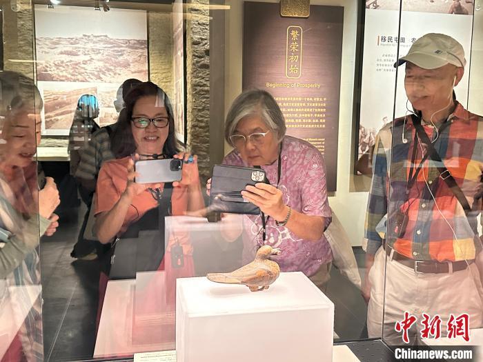 圖為游客在參觀彩繪漆木鳩?!〈魑牟?nbsp;攝