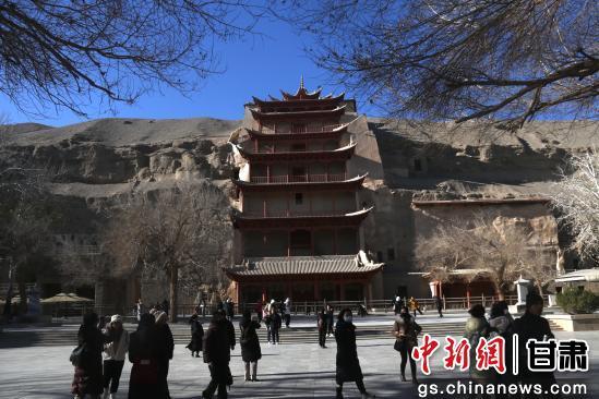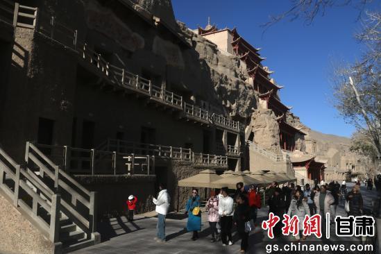 初冬時節(jié),游客走進世界文化遺產甘肅敦煌莫高窟欣賞燦爛的石窟藝術,品味悠久的敦煌歷史文化。