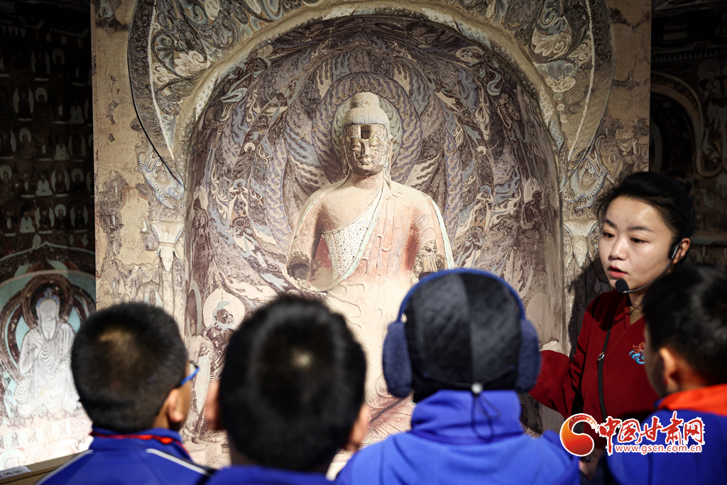 12月29日,蘭州市城關(guān)區(qū)安樂村小學(xué)學(xué)生在家人的陪同下來到敦煌研究院蘭州分院敦煌藝術(shù)館,欣賞“覺色敦煌 莫高精神”敦煌石窟藝術(shù)展,在周末時光近距離感受敦煌文化藝術(shù)的魅力。