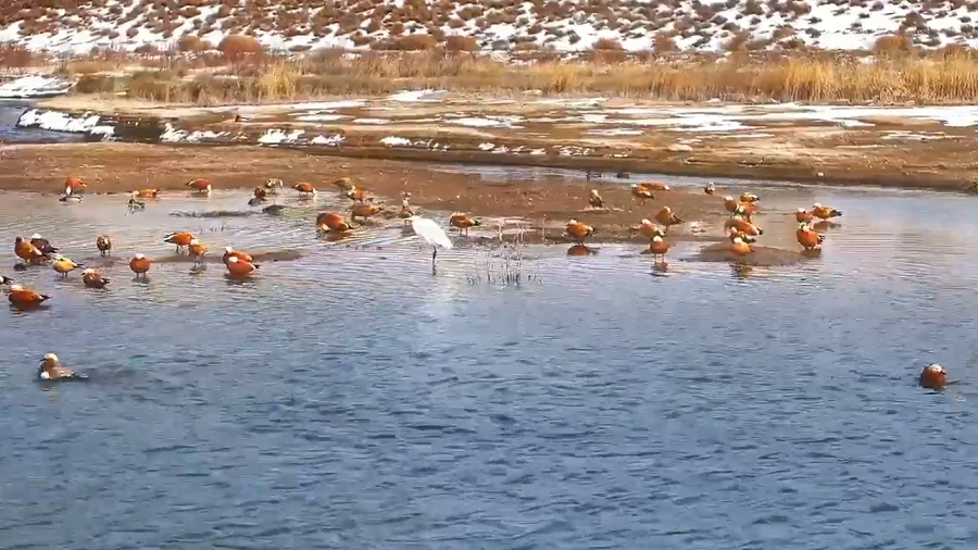 近日,甘肅秦王川國家濕地公園迎來候鳥遷徙高峰,國家二級保護動物斑頭秋沙鴨、白骨頂,成群結隊的赤麻鴨、綠頭鴨以及優(yōu)雅的白鷺構成“萬羽翔集”的生態(tài)畫卷,印證濕地生態(tài)系統(tǒng)的顯著改善。