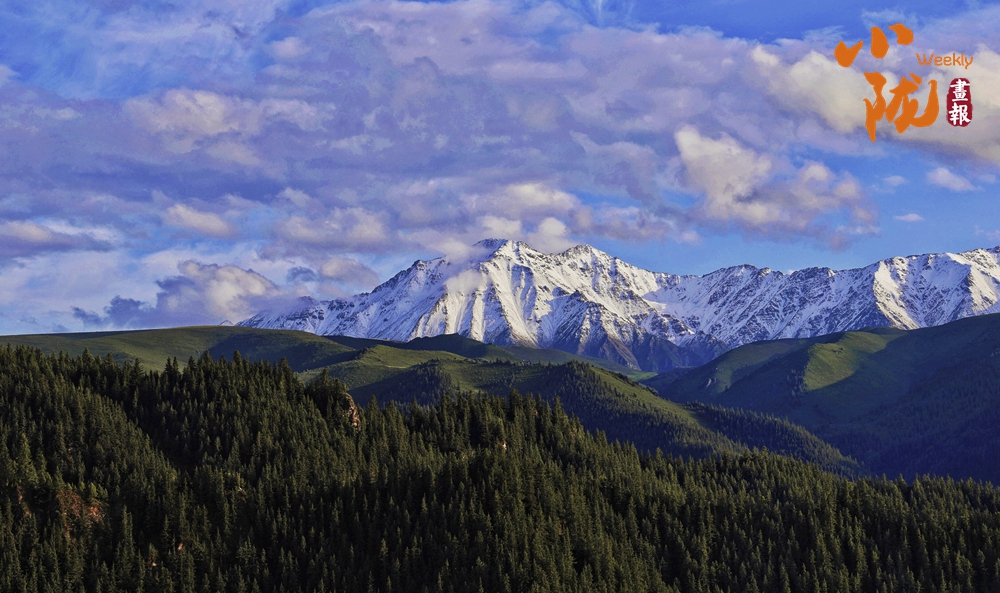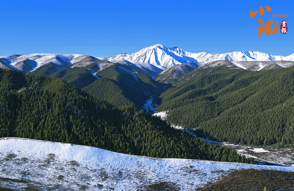 祁連雪峰周圍群峰羅列、層巒疊嶂,高低延綿的群山被此起彼伏的林海包圍,像一道道五彩的波浪,郁郁蔥蔥,生機盎然。站在祁連山巔俯瞰,冰川積雪與綠洲農田、森林構成震撼人心的生態(tài)畫卷。