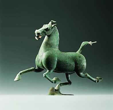 “銀鞍照白馬,颯沓如流星”“龍脊貼連錢,銀蹄白踏煙”……古人愛馬,從朝廷到民間皆是如此。然而有一匹銅奔馬,其意義已超越了一件普通的文物,它不僅被確定為中國旅游標(biāo)志,還曾多次登上中國郵票的封面。它,就是甘肅省博物館的鎮(zhèn)館之寶——東漢時期的銅奔馬。