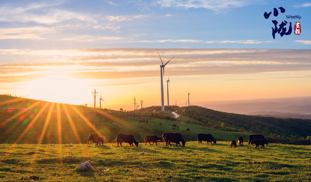 廣闊的牧場,一望無垠。綠油油的牧草覆蓋整片天地,宛如一片綠色的海洋。草原上游走的牛羊,與天空浮云、遠(yuǎn)景的群山、矗立的風(fēng)力發(fā)電機(jī)交相輝映,極目遠(yuǎn)望、蔚為壯觀,構(gòu)成關(guān)山古道一道靚麗風(fēng)景線。