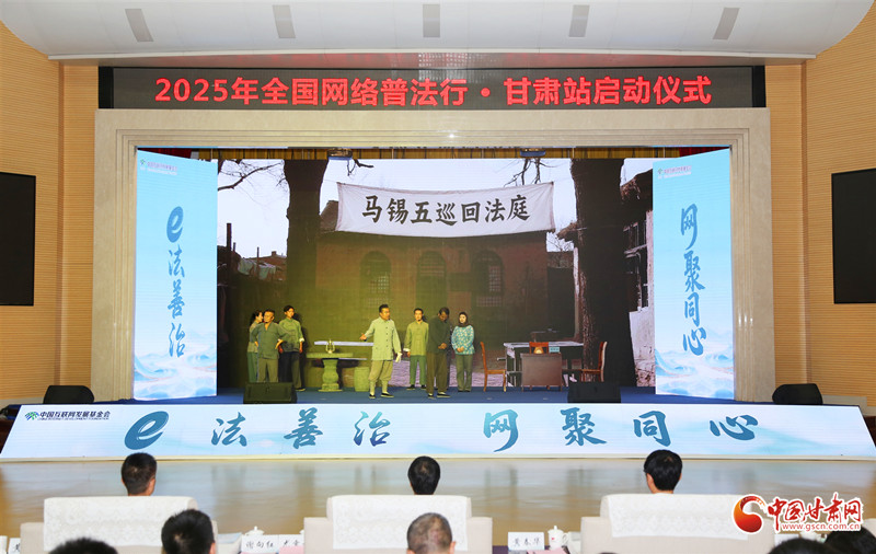 2025年“全國(guó)網(wǎng)絡(luò)普法行·甘肅站”活動(dòng)啟動(dòng)儀式上,原創(chuàng)網(wǎng)絡(luò)普法情景劇《法承初心》驚艷亮相,以獨(dú)特視角展現(xiàn)紅色法治文化與現(xiàn)代數(shù)字科技的交融碰撞,為觀眾帶來一場(chǎng)別開生面的法治盛宴。