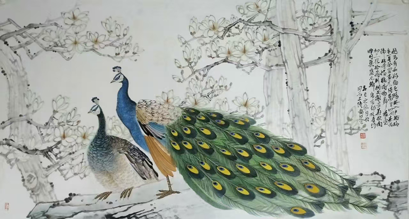 近年來(lái),王自強(qiáng)的創(chuàng)作逐漸從具象走向意象。他嘗試將工筆畫的細(xì)膩與隸書的厚重結(jié)合,在《荷塘清韻》等作品中,荷葉的墨色層次與書法的線條韻律相互映襯,形成“書畫同源”的藝術(shù)境界,這種對(duì)書法藝術(shù)的探索精神不僅得到業(yè)界認(rèn)可,而且得到了社會(huì)的廣泛認(rèn)同。