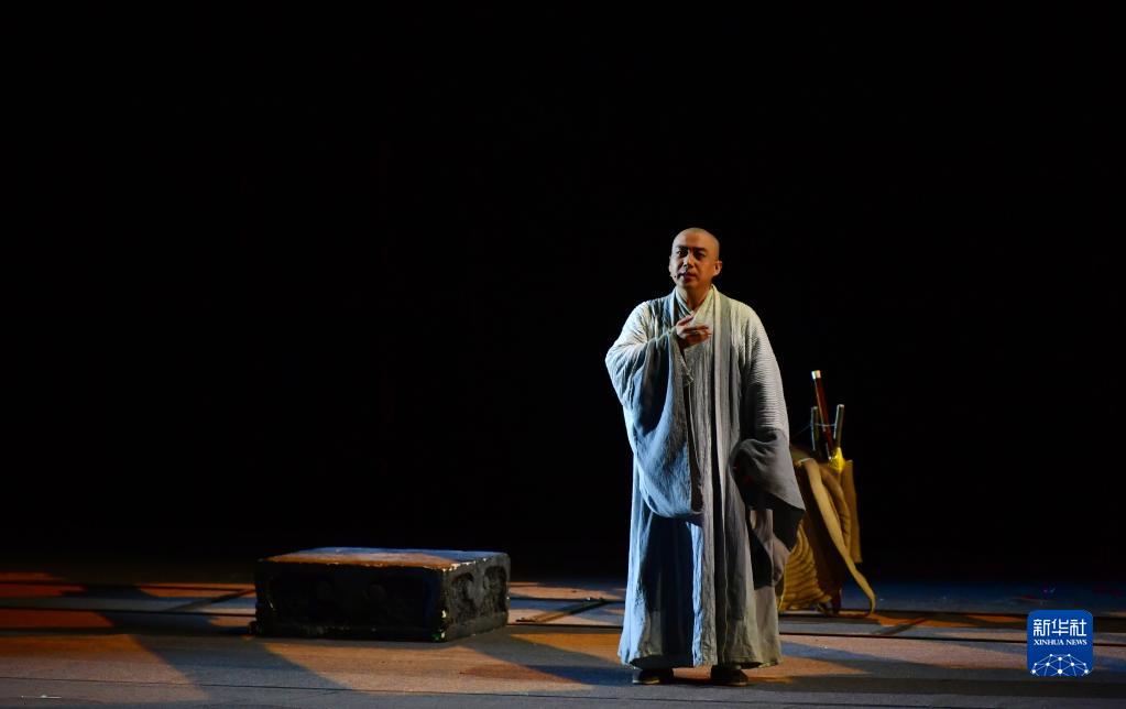 演員在敦煌大劇院表演大型民族器樂劇《玄奘西行》(9月23日攝)。新華社記者 陳斌 攝