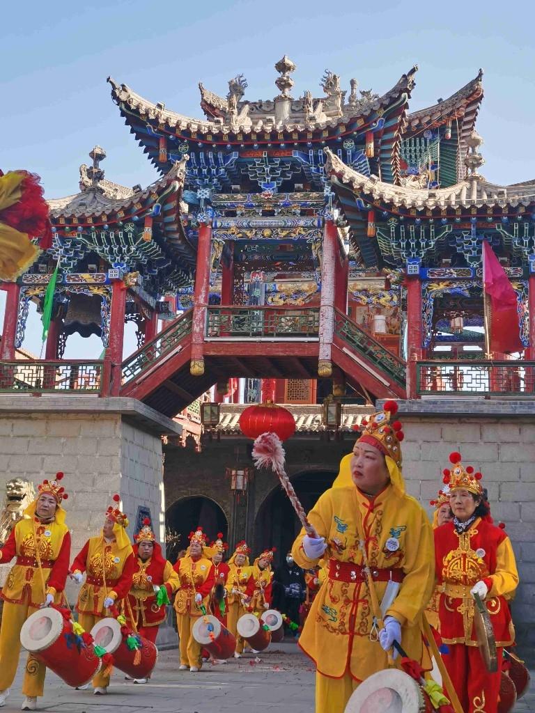 在社火展演現(xiàn)場,人員身穿鮮艷亮麗的服飾,伴隨著鏗鏘歡快的鼓點,以飽滿的激情展示了源遠(yuǎn)流長的民間社火藝術(shù),為群眾送來了虎年的祝福。