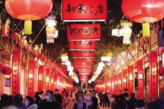 其中,甘南州夏河縣以民間舞與民歌聯(lián)歡的方式迎接春節(jié)的到來(lái),“南木特”藏戲公益性展演活動(dòng)也同步拉開序幕;武都高山戲民間演出活動(dòng)在隴南市武都區(qū)魚龍鎮(zhèn)精彩上演;張掖市民樂(lè)縣秦腔展演讓城北民俗文化村的游客們大飽耳福;白銀市先后舉辦了景泰樹皮筆畫作品展、“美在民間”白銀剪紙傳承人作品邀請(qǐng)展;正月十三,定西市安定區(qū)內(nèi)官營(yíng)鎮(zhèn)一年一度的“凈街”民俗活動(dòng)成功舉行,現(xiàn)場(chǎng)熱鬧非凡;金昌市永昌縣“保護(hù)非遺·傳承民俗·慶祝元宵”為主題的“卍”字燈城民俗文化活動(dòng)于元宵佳節(jié)閃亮登場(chǎng);在蘭州老街穿漢服、賞花燈、游園會(huì),沉浸式體驗(yàn)傳統(tǒng)文化成為新民俗。
