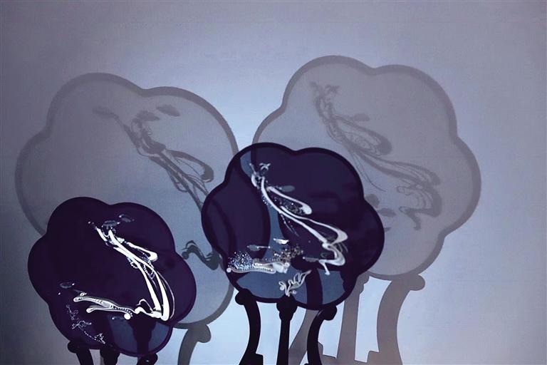 2019年劉瑤手繡的一組《敦煌手姿》扇面問世,黑色的生絹之上,用金線刺繡出敦煌手姿的婀娜曼妙。劉瑤在創(chuàng)作中,用線條貫穿每一個細節(jié),極盡傳情達意,用針與線賦予了手姿柔美與力量。也正是憑借著這一組精美絕倫的“敦煌風”扇面,劉瑤叩開了這個項目的大門,成為了甘肅省唯一的入選者。