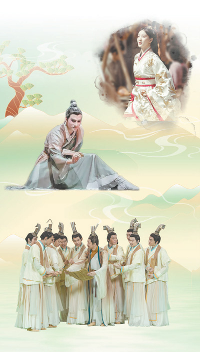 圖片從上至下依次為綜藝節(jié)目《舞千年》劇照、國風舞蹈《紙扇書生》《孔子》劇照。 制圖:趙偲汝