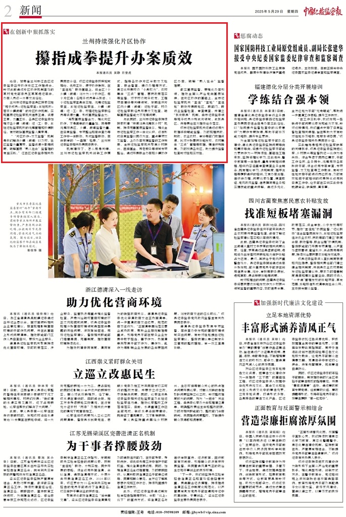 “凝聚基層監(jiān)督合力,強化片區(qū)協(xié)作,不是簡單的力量疊加,而是要統(tǒng)籌好縣區(qū)、鄉(xiāng)鎮(zhèn)、街道監(jiān)督力量,在日常監(jiān)督、專項整治和案件查辦等工作中一體聯(lián)動,形成監(jiān)督聯(lián)動、案件聯(lián)審的‘一盤棋’格局。”蘭州市紀委監(jiān)委相關負責同志表示。