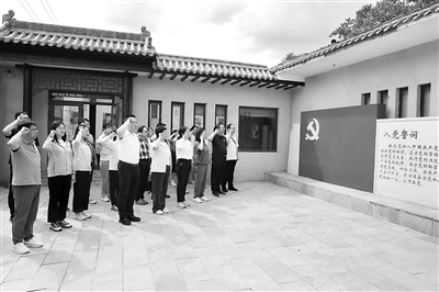 近日,山西省紀(jì)委監(jiān)委機(jī)關(guān)部分黨員在晉綏八分區(qū)(專(zhuān)署)舊址開(kāi)展“傳承紅色基因,砥礪初心使命”主題黨日活動(dòng)。圖為黨員重溫入黨誓詞。王鵬波 攝