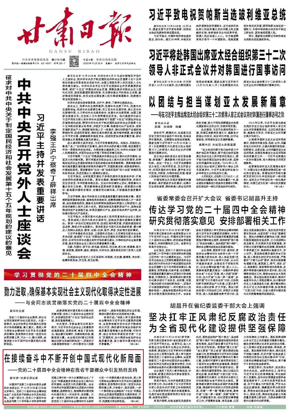 《甘肅日報(bào)》2025年10月25日 第1版