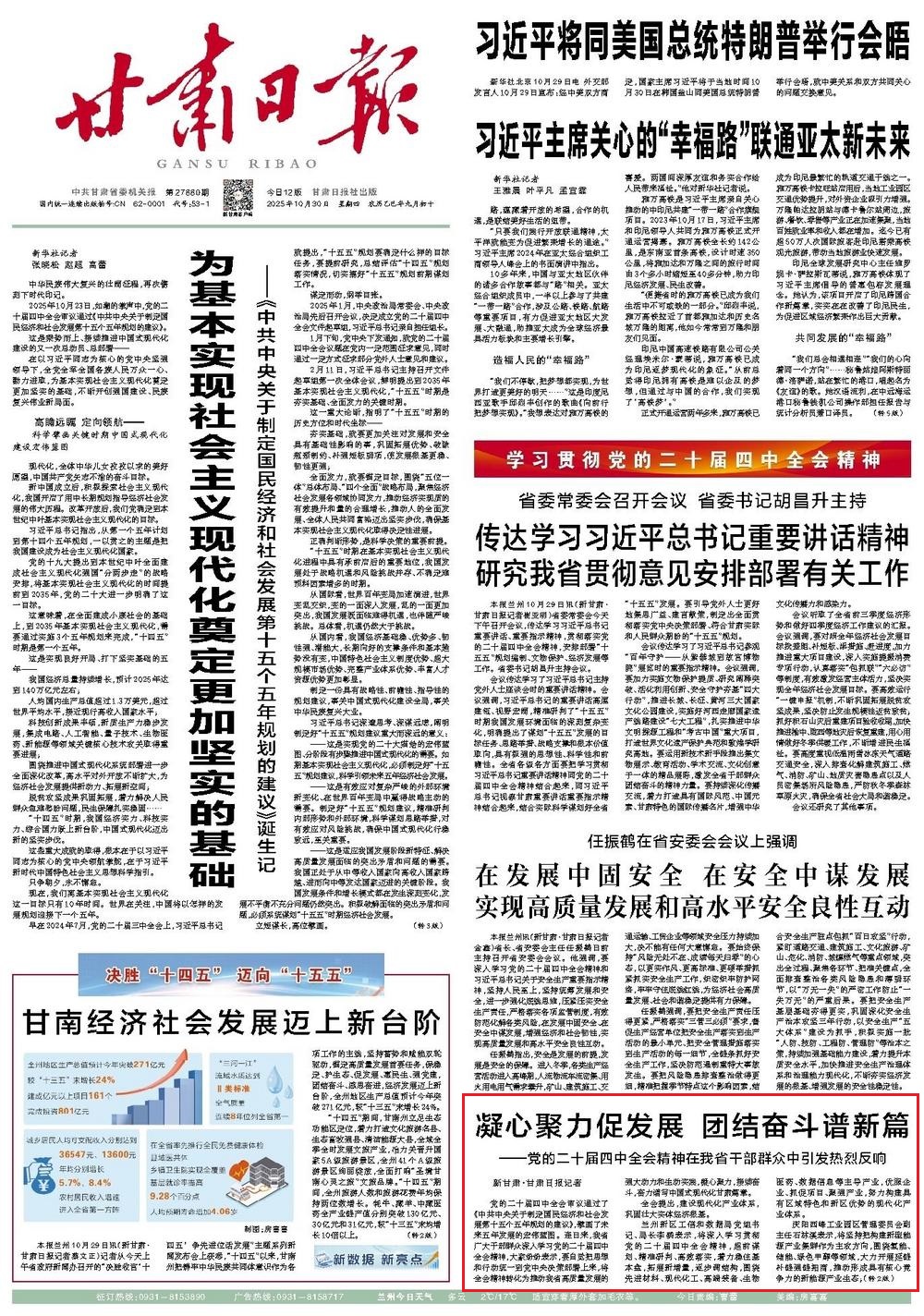 黨的二十屆四中全會審議通過了《中共中央關(guān)于制定國民經(jīng)濟和社會發(fā)展第十五個五年規(guī)劃的建議》,擘畫了未來五年發(fā)展的宏偉藍(lán)圖。連日來,我省廣大干部群眾深入學(xué)習(xí)黨的二十屆四中全會精神,大家紛紛表示,要自覺把思想和行動統(tǒng)一到黨中央決策部署上來,將全會精神轉(zhuǎn)化為推動我省高質(zhì)量發(fā)展的強大動力和生動實踐,凝心聚力,接續(xù)奮斗,奮力譜寫中國式現(xiàn)代化甘肅篇章。