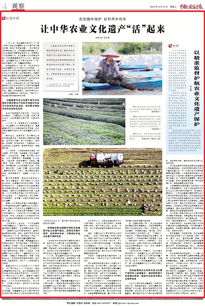 紀(jì)檢監(jiān)察機(jī)關(guān)主動將農(nóng)業(yè)文化遺產(chǎn)保護(hù)納入監(jiān)督重點,推動職能部門積極履行職責(zé),推進(jìn)中華優(yōu)秀農(nóng)耕文化保護(hù)傳承