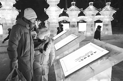 黑龍江省哈爾濱市依托冰雪文化資源創(chuàng)建廉潔品牌,打造含有清廉元素的冰雪景觀園,讓市民游客在賞冰樂雪的同時受到廉潔文化的浸潤。圖為市民在冰雪景觀前駐足。 劉萌 攝
