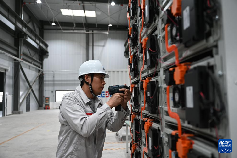 8月10日,工人在葛洲壩(甘肅)能源科技有限公司組裝電化學儲能裝置。新華社記者 金良快 攝