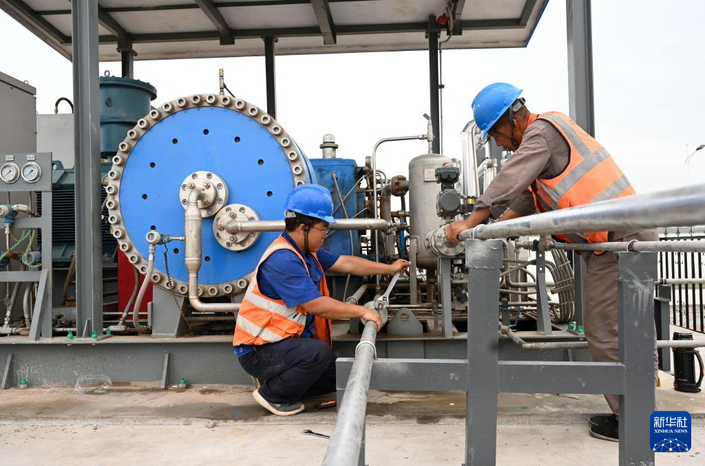 8月10日,工人在中國能建張掖氫能綜合應用示范項目調(diào)試氫氣加壓裝置。新華社記者 金良快 攝