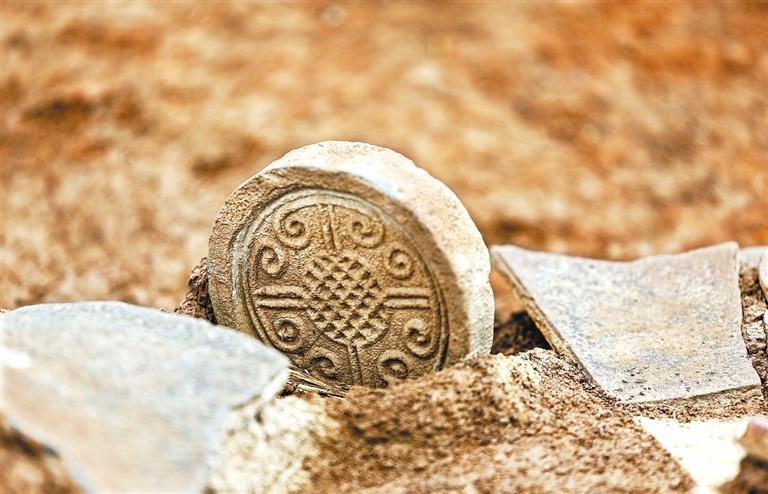 禮縣四角坪遺址出土的云紋瓦當(dāng)。