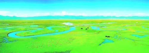 在這里,每看一眼都是風(fēng)景,每行一步都有故事,每一片土地都是一幅絕美的圖畫(huà)。黃河從云煙蒼茫的雪域高原流出,冰雪化為淙淙流水,沿途九曲回腸,匯納百川,留下一個(gè)個(gè)碧波蕩漾的湖泊,懷抱起一片片豐腴壯美的草原,孕育著一座座城鎮(zhèn)和村落,養(yǎng)育了各族兒女,播撒著希望,醞釀著生機(jī)……