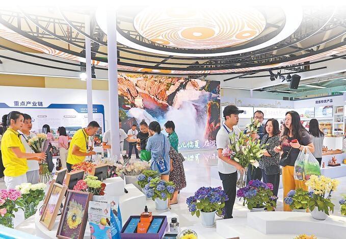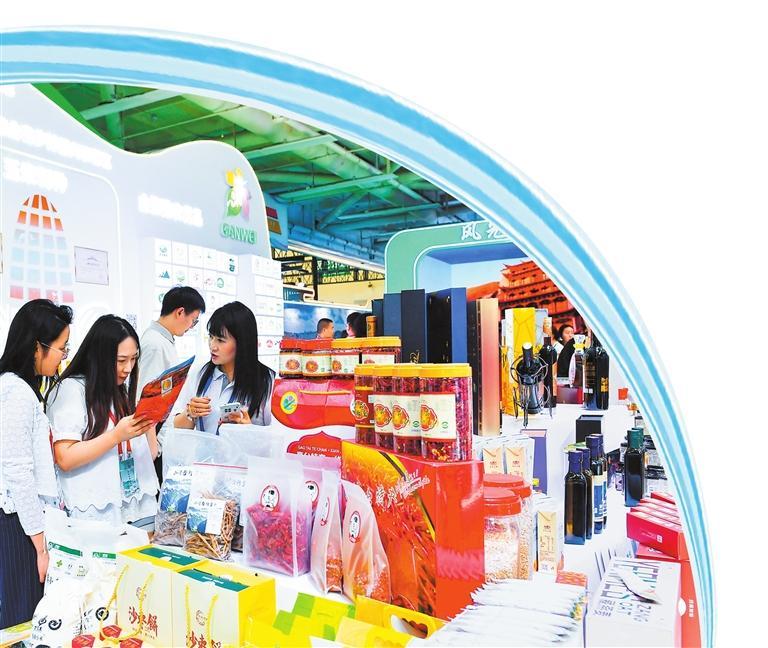 張掖館內(nèi),各類特色農(nóng)產(chǎn)品受到人們的青睞。 新甘肅·甘肅日報(bào)記者 馬伊星