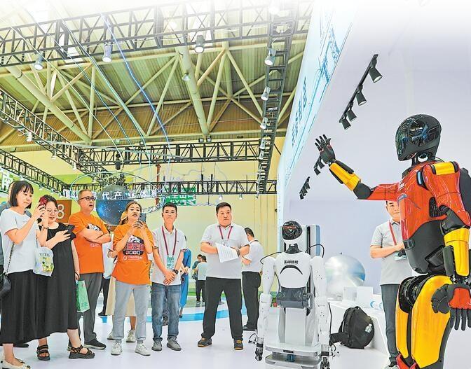 蘭州館內(nèi),參觀者與機(jī)器人展開互動(dòng)。本組圖片攝影:新甘肅·甘肅日報(bào)記者 田蹊