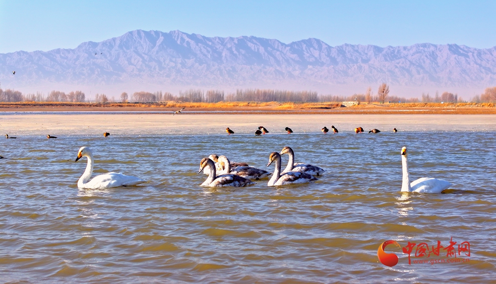 11月24日,一場(chǎng)瑞雪過(guò)后,臨澤大地銀裝素裹。朱紅殿宇與皚皚祁連山相映成趣,繪就獨(dú)特意境。雙泉湖雖覆薄冰,卻有成群天鵝游弋,潔白的身影在冰面與雪色間穿梭,為靜謐的冬日注入生機(jī)。