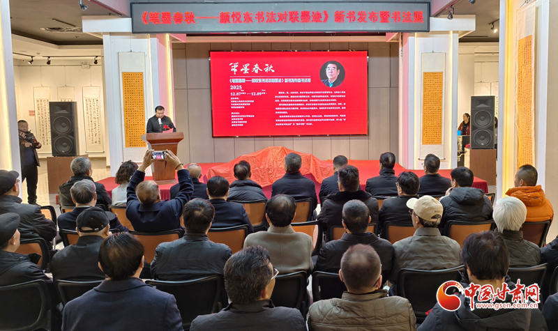 中國(guó)甘肅網(wǎng)12月7日訊(西北角·中國(guó)甘肅網(wǎng)記者 任磊)12月7日上午,《筆墨春秋—顏悅東書(shū)法對(duì)聯(lián)墨跡》新書(shū)發(fā)布暨書(shū)法展在甘肅省藝術(shù)館啟幕。本次展覽集中呈現(xiàn)顏悅東近年來(lái)創(chuàng)作的120幅書(shū)法作品,同期發(fā)布的新書(shū)收錄楹聯(lián)作品330副,系統(tǒng)呈現(xiàn)了作者在書(shū)法領(lǐng)域的藝術(shù)探索與創(chuàng)作成果。