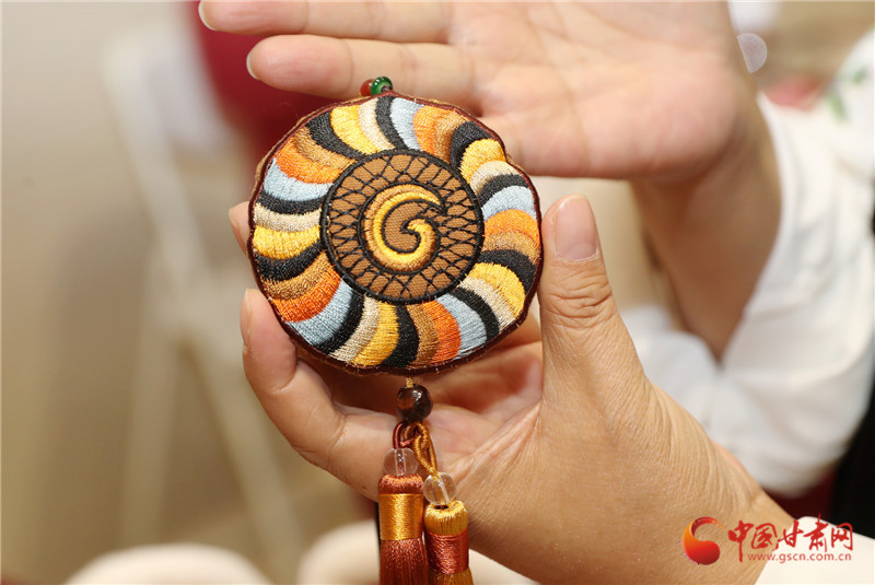 真正讓她想“給香包加點(diǎn)新東西”,是一次省博看展的觸動。站在馬家窯彩陶罐前,她盯著罐身流轉(zhuǎn)的旋渦紋出了神:“這么好看的紋路,繡在香包上多妙?”后來去敦煌,莫高窟里飛天的飄帶、藻井的繁復(fù)花紋更讓她挪不開腳?;貋淼穆飞?,一個(gè)念頭愈發(fā)清晰:要讓博物館里的文物“活”在香包里,讓老手藝沾染上“文化氣”。