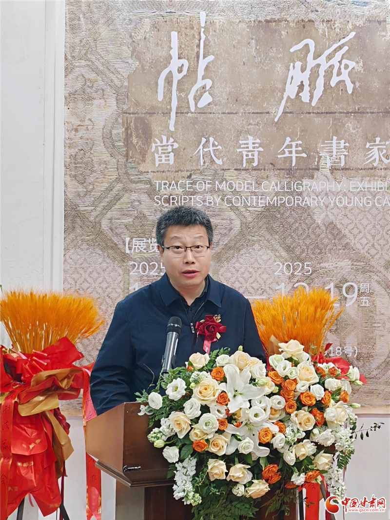 12月14日上午,“帖脈溯望——當(dāng)代青年書家行草作品展”在甘肅美術(shù)館開幕。中國(guó)書法家協(xié)會(huì)理事、甘肅省文聯(lián)黨組成員、副主席陳新長(zhǎng)在開幕式致辭中表示,河北美術(shù)學(xué)院七位青年教師的作品展,以九零后的視角重新解讀二王法脈、唐草風(fēng)神與晚明意趣,作品既有晉唐筆法的精微細(xì)膩,又有當(dāng)代審美的開闊格局。