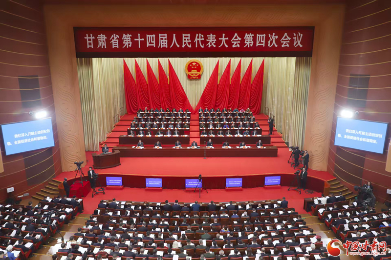 會場莊重簡樸、氣氛熱烈。主席臺帷幕正中的國徽在鮮艷的紅旗映襯下熠熠生輝。二樓眺臺上,高懸“緊密團結在以習近平同志為核心的黨中央周圍,加快建設幸福美好新甘肅、不斷開創(chuàng)富民興隴新局面,奮力譜寫中國式現(xiàn)代化甘肅篇章!”的巨幅標語,鼓舞人心、催人奮進。