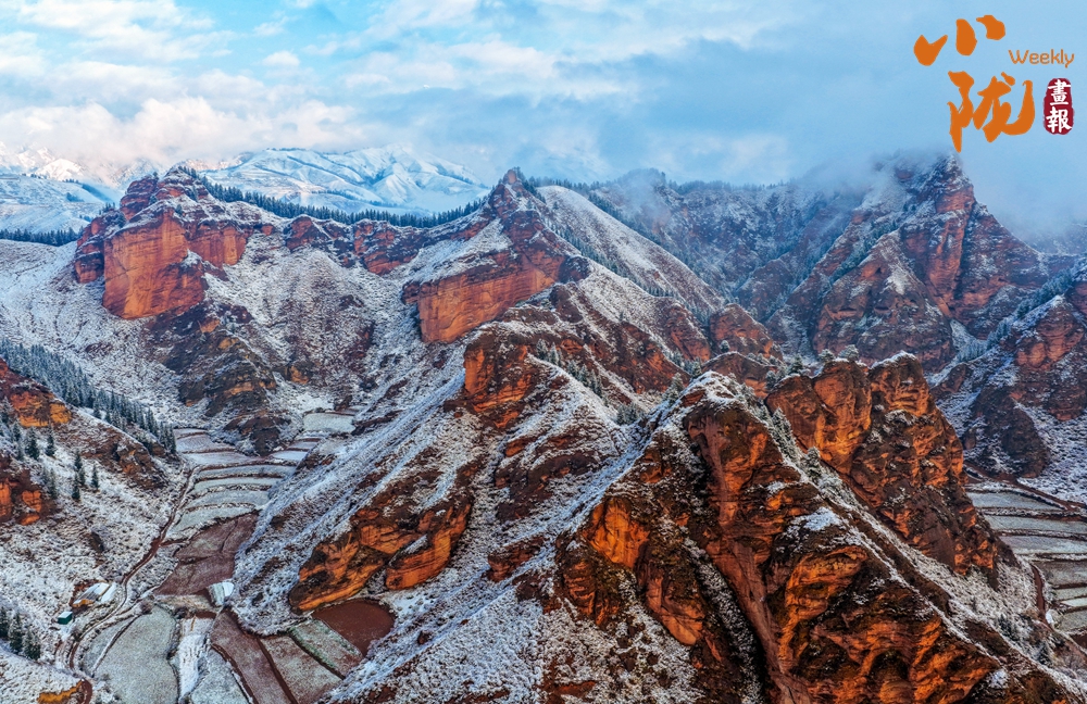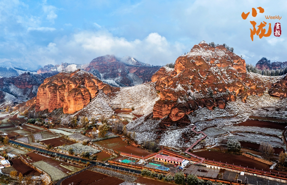 晨光中,雪色與丹霞相映生輝;暮色里,赤巖與積雪共染余暉。這幅景象既有西北的蒼茫,又不失江南的婉約,是自然贈(zèng)與的視覺盛宴。