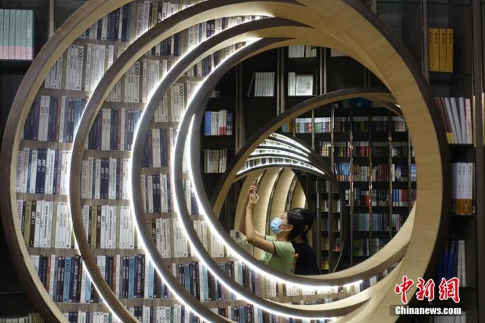 資料圖:8月19日,市民在北京西單的網(wǎng)紅書店“鐘書閣”拍照打卡。 中新社記者 蘇丹 攝