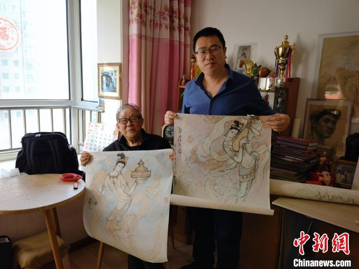 3月上旬,《絲路花雨·誕生》作者陳曉斌(右)拜訪今年86歲的舞美設(shè)計(jì)師李明強(qiáng)(右)老先生。 王先孟 攝