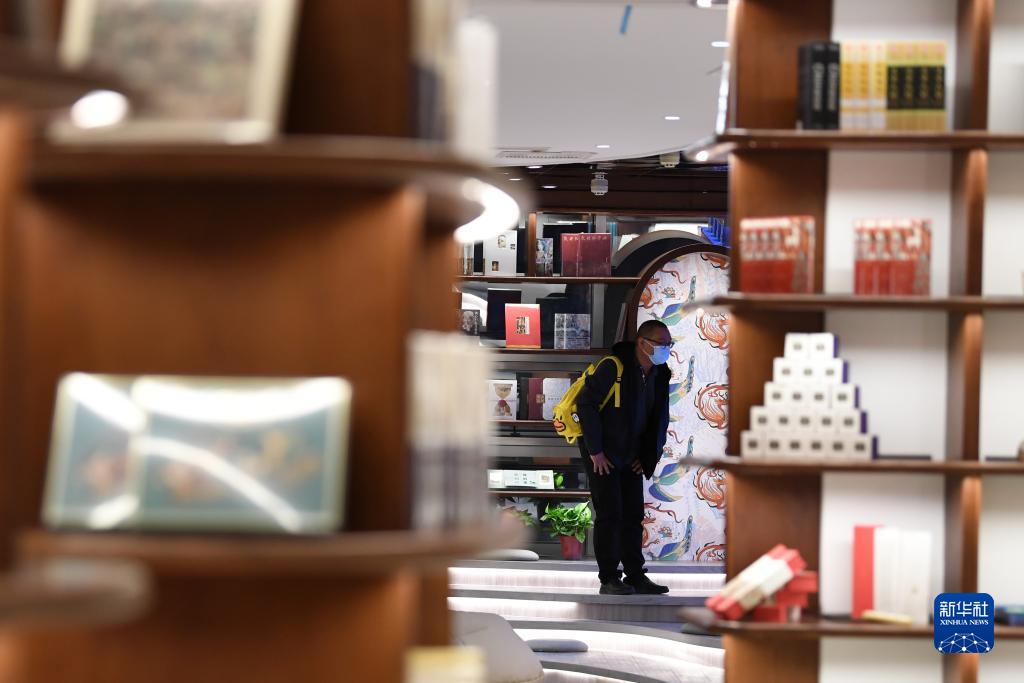 讀者從敦煌書局的書架旁走過(4月21日攝)。新華社記者 陳斌 攝