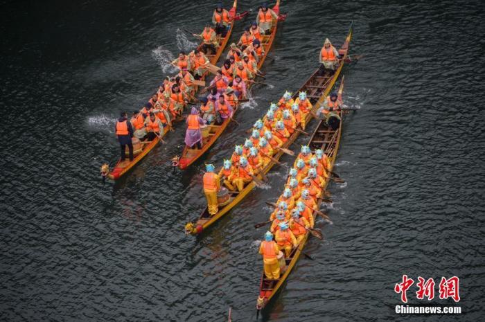 資料圖:正值農(nóng)歷二月初二,湖南長(zhǎng)沙石燕湖舉行“龍?zhí)ь^”龍舟賽。楊華峰 攝