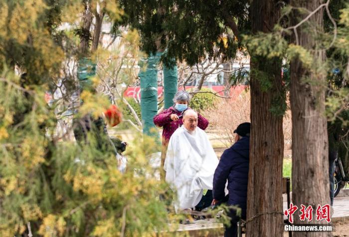 資料圖:北京市民在街頭休閑區(qū)理發(fā)。當(dāng)天是中國(guó)農(nóng)歷二月初二,民間有“二月二,剃龍頭”的傳統(tǒng)習(xí)俗,寓意辭舊迎新,帶來好兆頭。 中新社記者 侯宇 攝
