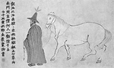 《牽馬圖軸》 (清)金龍畫作