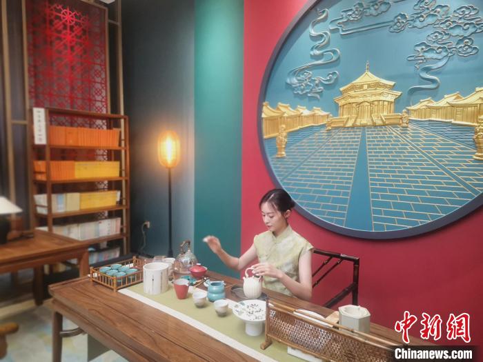 中新網(wǎng)沈陽4月19日電(記者 趙桂華 王藝霖) 中式園林的實景幕墻掩映著古風桌椅、宮廷地燈、中式書架等微景觀,讓讀者暢游書海的同時,仿佛置身中國古代書院書房之中。