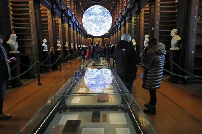 人們?cè)趷蹱柼m都柏林大學(xué)圣三一學(xué)院老圖書館內(nèi)參觀(1月16日攝)。