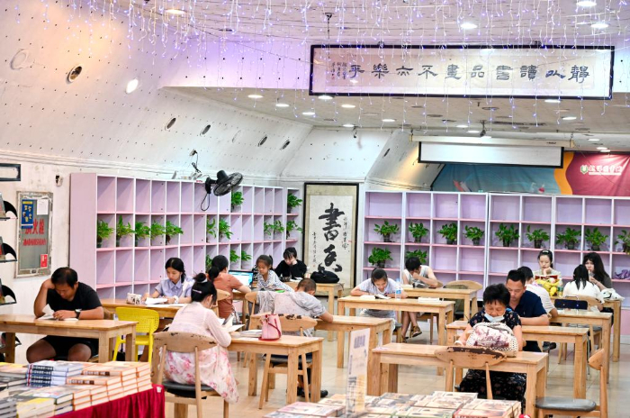 連日來,福建省福州市持續(xù)高溫,市區(qū)各圖書館、圖書商城成為市民消暑讀書好去處。