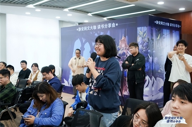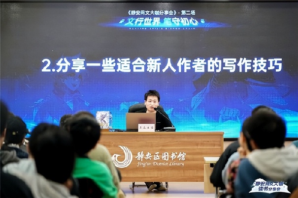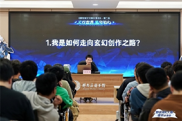 本次分享會再次邀請知名網(wǎng)絡(luò)文學(xué)作家天蠶土豆作為主講嘉賓,與讀者們面對面交流,分享他的寫作技巧和創(chuàng)作趣事,在互動環(huán)節(jié)解答讀者對網(wǎng)絡(luò)文學(xué)作品的好奇?;顒蝇F(xiàn)場熱情積極,在靜安區(qū)圖書館充滿書卷氣的環(huán)境里展現(xiàn)著獨(dú)特魅力。