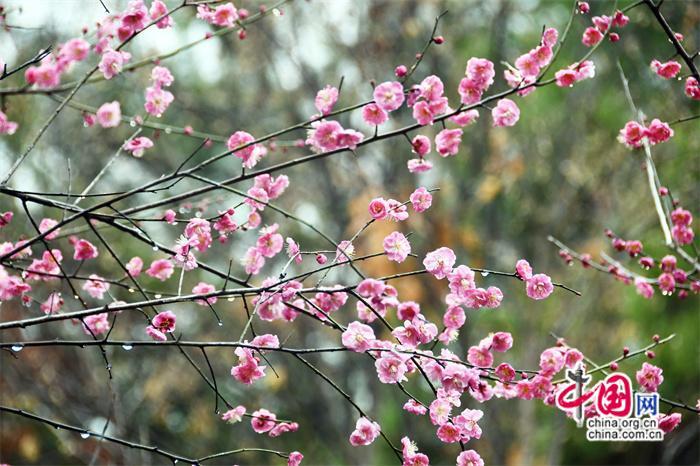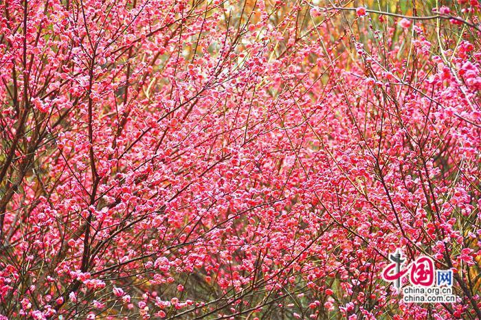 湖南新邵縣委黨校數(shù)千株寒梅迎春綻放。中國網發(fā)