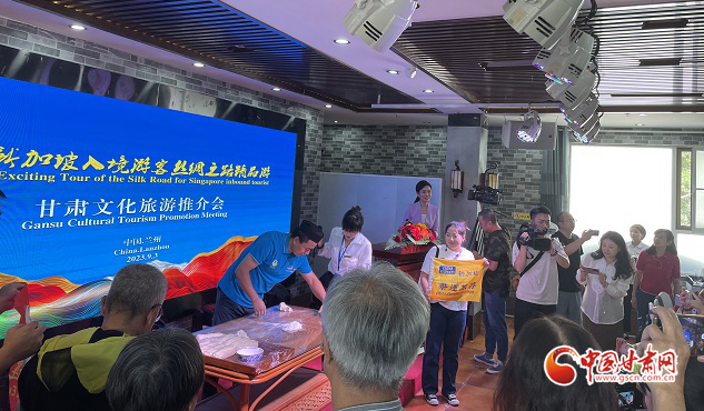 推介會上,播放了“交響絲路·如意甘肅”文化旅游形象宣傳片。甘肅文化和旅游推介大使王建萍向新加坡賓客詳細(xì)介紹了甘肅多元且極富特色的文化旅游資源,深深地激發(fā)了他們對甘肅的向往與喜愛之情。蘭州拉面師傅為大家現(xiàn)場表演了特色非遺美食“蘭州牛肉面”,精彩的表演引得現(xiàn)場不時(shí)爆發(fā)出陣陣掌聲。期間,新加坡南方藝術(shù)研究會合唱團(tuán)還進(jìn)行了合唱表演。