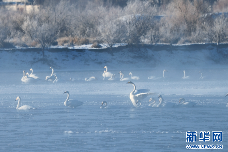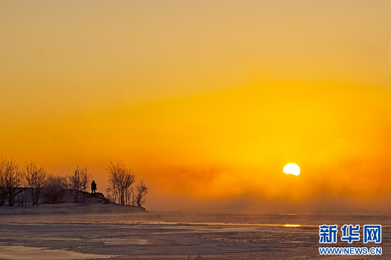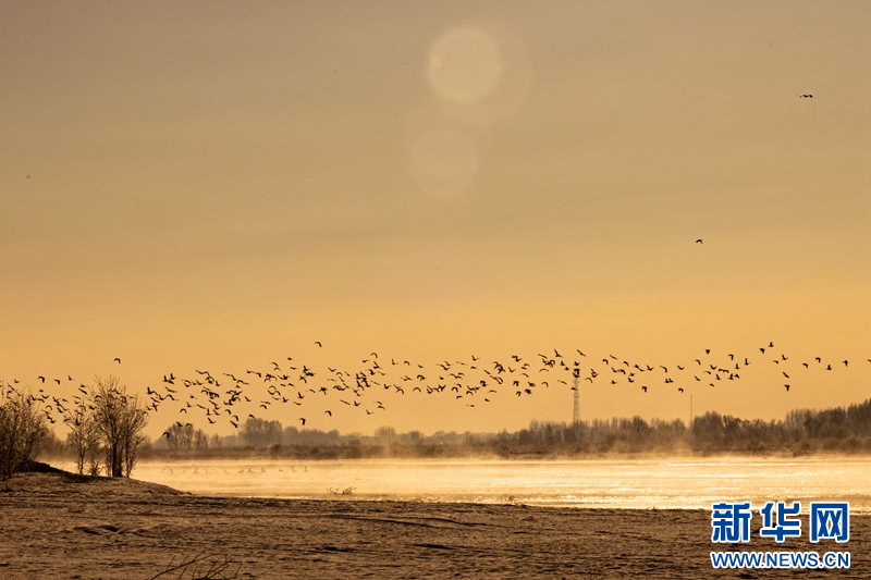 1月21日,冬日清晨,甘肅張掖黑河濕地日出如畫。一輪冉冉升起的紅日絢麗奪目,與河流、樹木、候鳥、晨霧共同構成了一幅生態(tài)畫卷。新華網(wǎng)發(fā)(成林 攝)